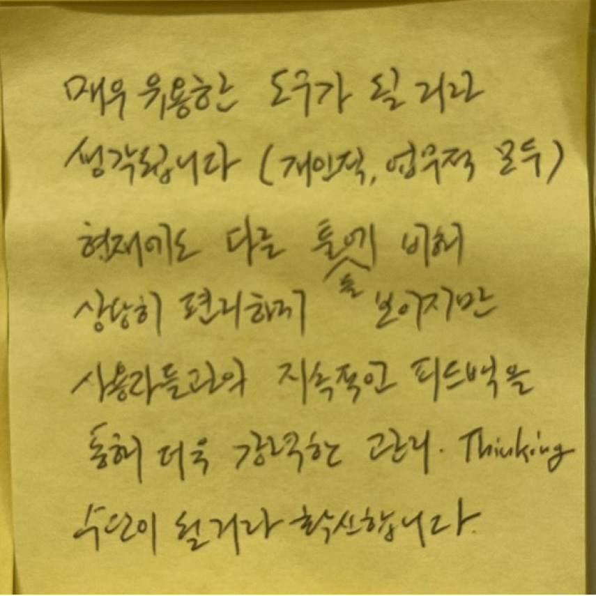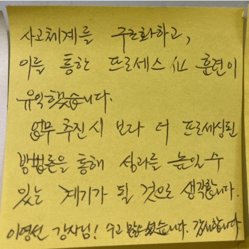 업무 뿐만이 아니라 앞으로 인생을 살아가는 것에 많은 도움이 될 것 같고, 이제야 알았다는 것이 오히려 아쉬웠습니다.