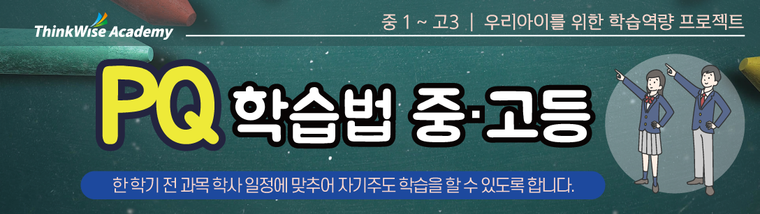PQ 학습법을 단계적으로 하면서 단순히 새로운 사교육이기 보다는 본인이 좀더 많이 생각을 하고, 본인 학교 수업의 어려운 부분을 차츰