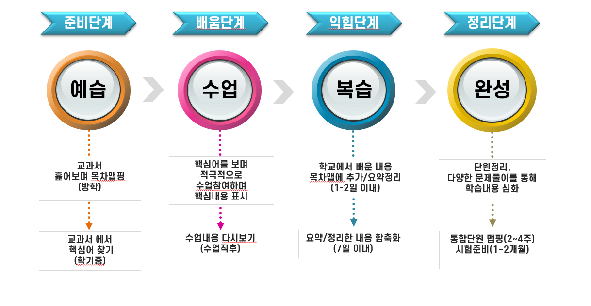 - 한 학기 학사일정에 맞춰 자기주도학습을 할 수 있도록 훈련합니다.
