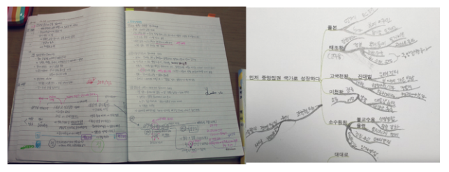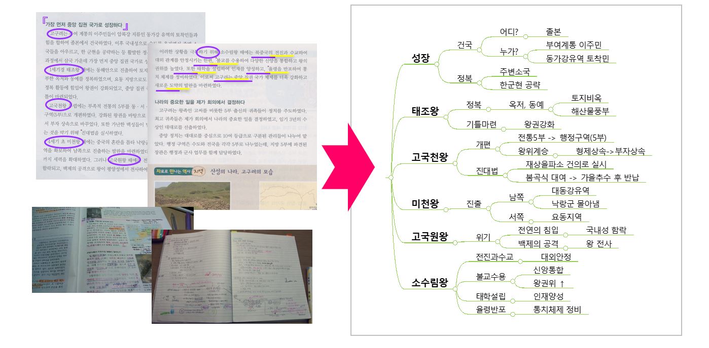 - ✔ 교과서, 노트, 유인물의 내용을 핵심어 중심으로 맵핑하기
