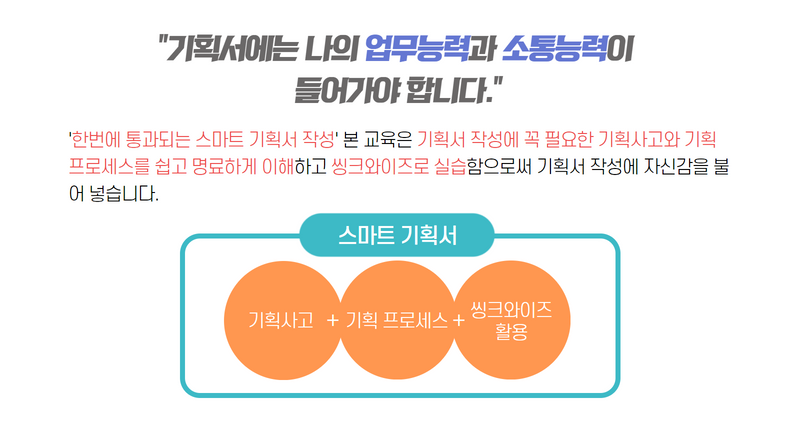 - 기획서를 핵심 정리와 설득력 있고 빠른 시간 내에 완성할 수 있다.